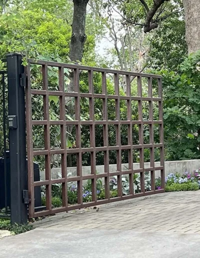 No two properties are alike, so we make sure your gate is unique and tailored specifically to your needs and budget. Many of our customers like going with hardwood. It’s durable and attractive, and it comes in many exotic woods like Ipe, Cumaro, Thermory, Tigerwood, Brazilian Apitong, Garapa, and Merbau.